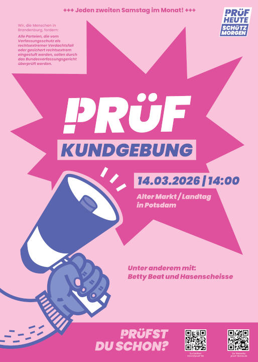 14.3.2026 "PRÜF!"-Demos in Potsdam - Webseite und Berlin - Webseite , siehe auch "Regelmäßige Termine"